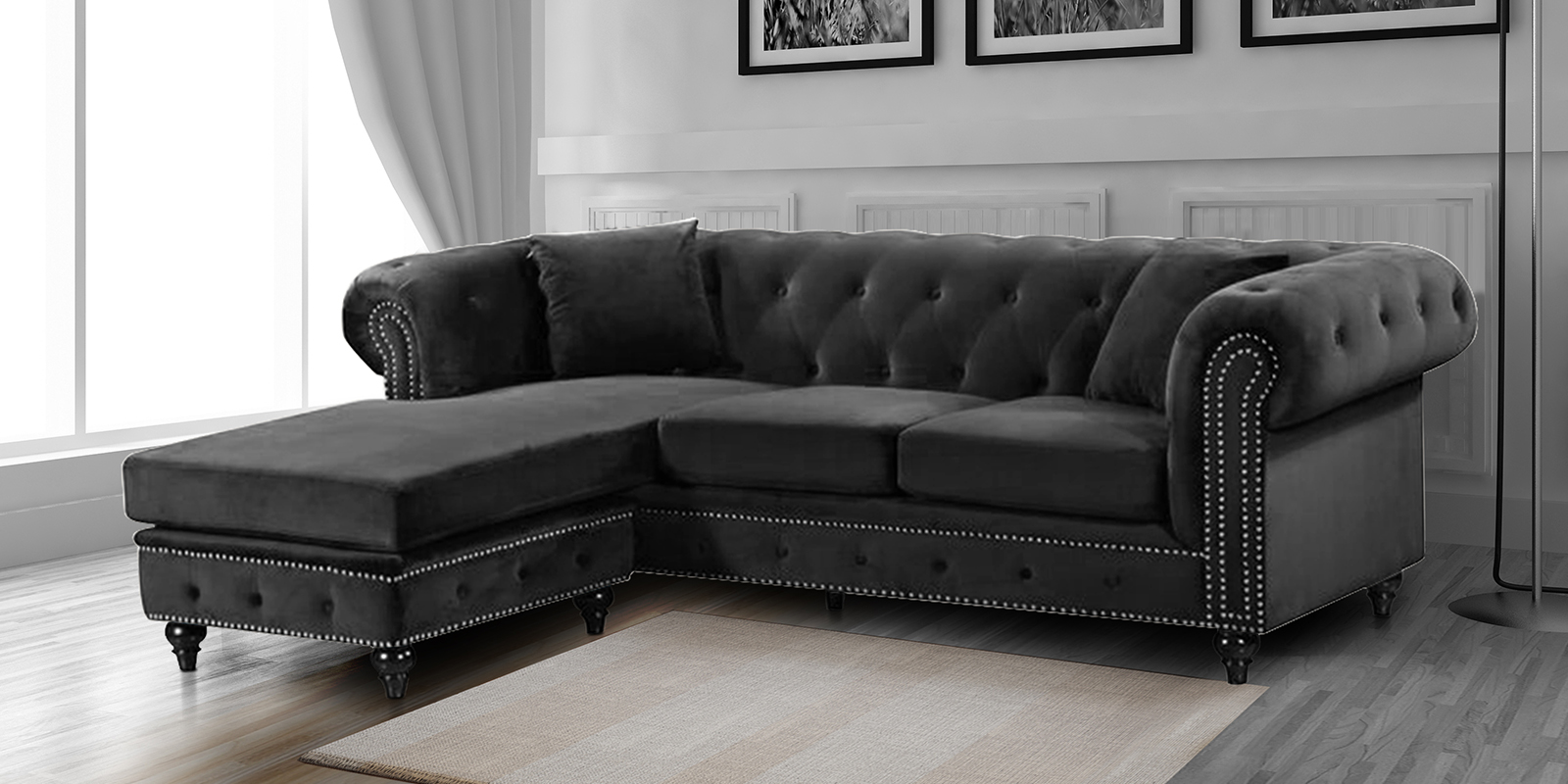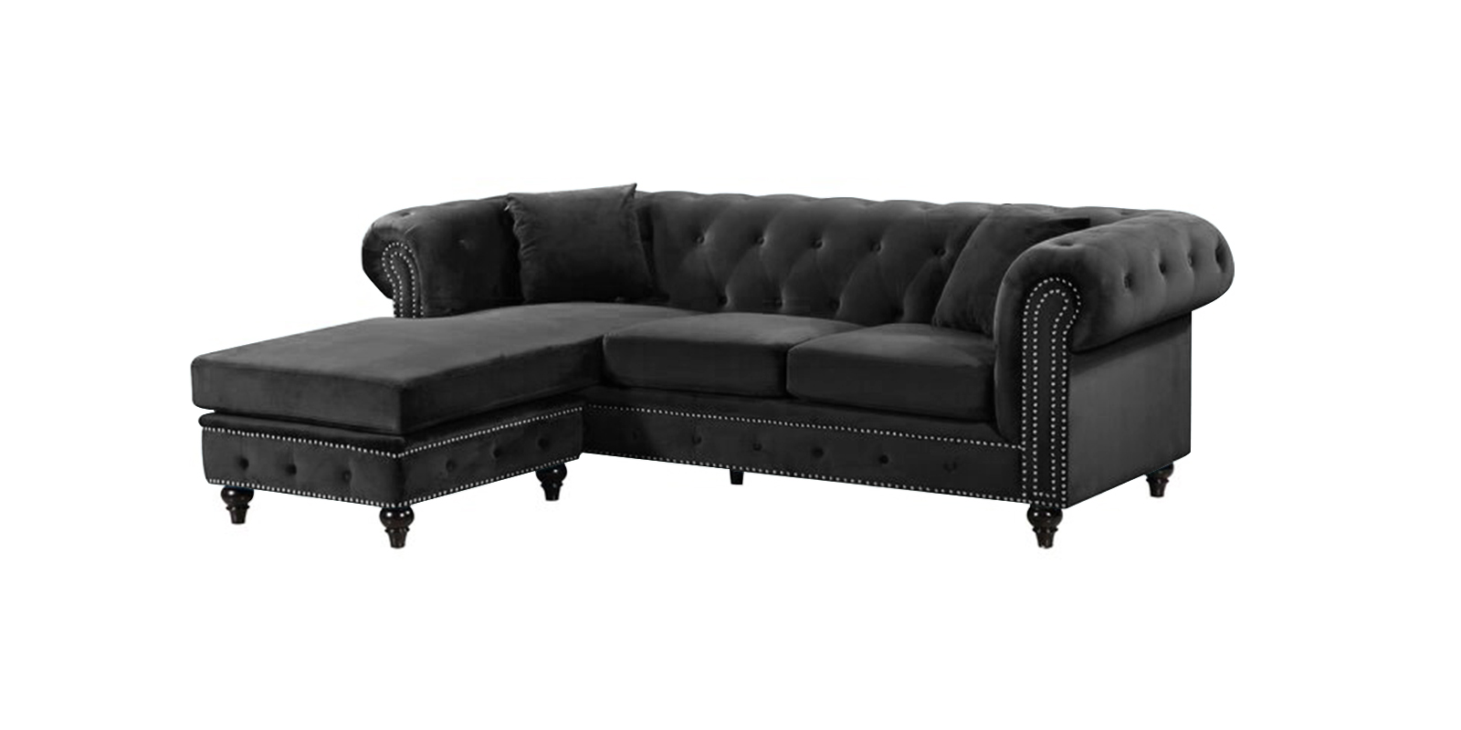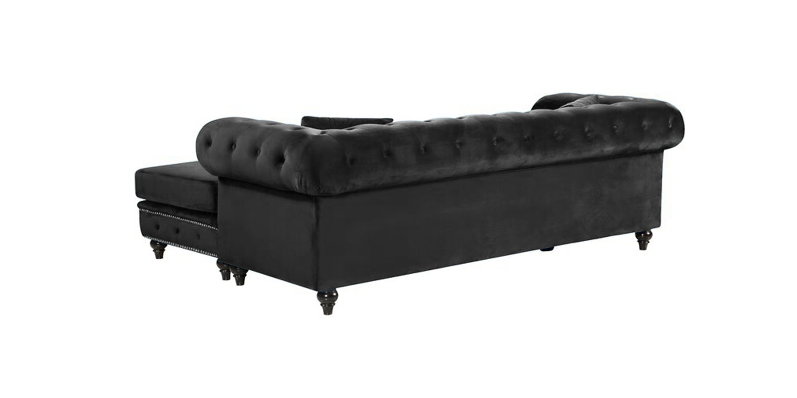 Conventional parlor style and Hollywood glitz advance consolidate right now! Established on a strong and produced wood outline, this smart plan strikes a L-molded chesterfield outline with a moved back and arms.Delicate velvet upholstery wraps the entire couch, highlighted by profound catch tufts and shining hail head trim for a custom fitted touch, while medium-firm froth filled seat pads and two coordinating hurl cushions offer agreeable help.