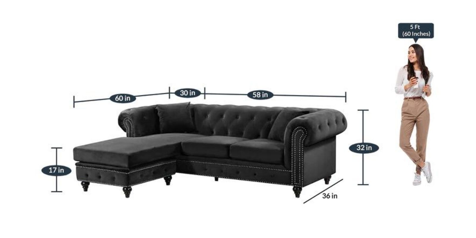 | Dimensions | H 32 x W 58 x D 36 (in); Seating Height-17 (in) H 32 x W 60 x D 30 (in); Seating Height-17 (in) |