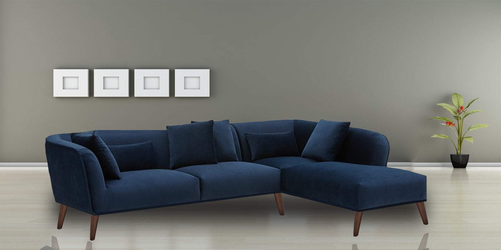 Distinguished LHS Two Seater Sofa with Lounger in Navy Blue Colour can be arranged in in multiple configurations to suit most room sizes and decors. Comfort comes from the thick, luxuriously padded foam seats, arms and backs.