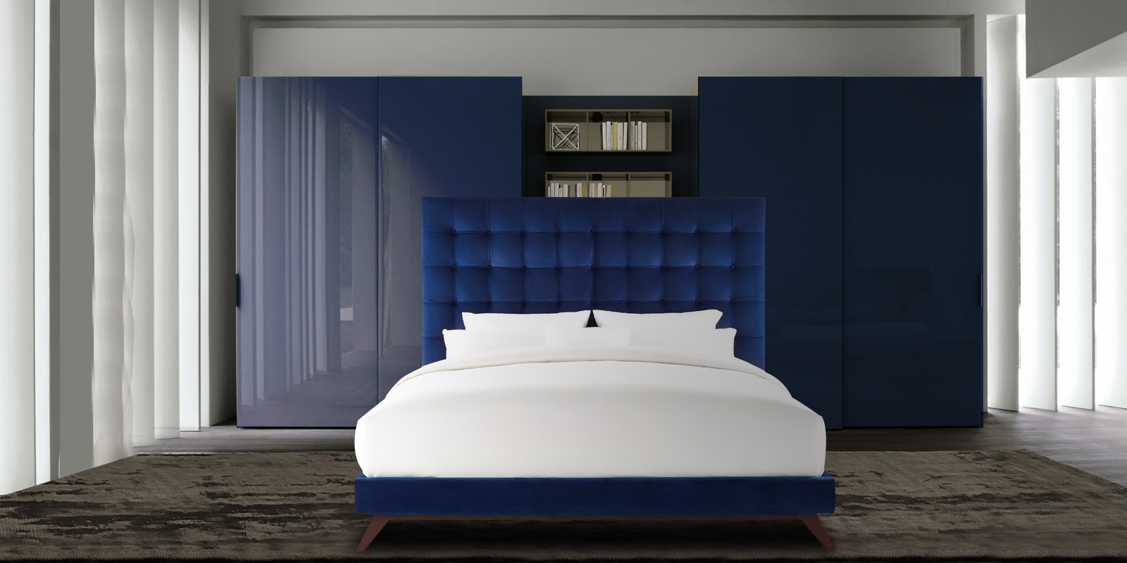 Glorious Queen Size Upholstered Bed in Blue Colour by Dreamzz Furniture