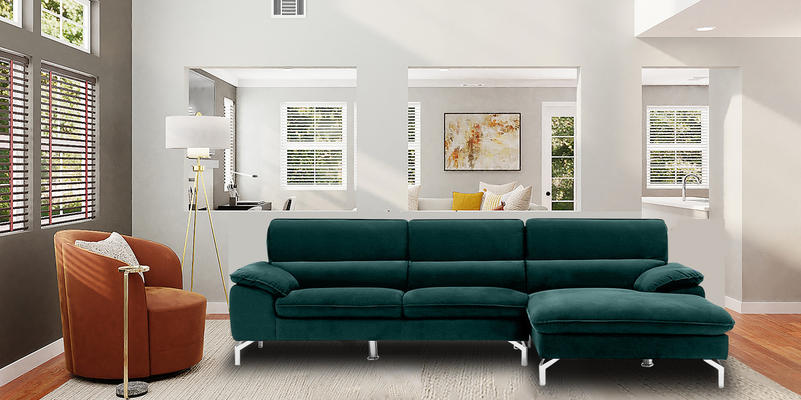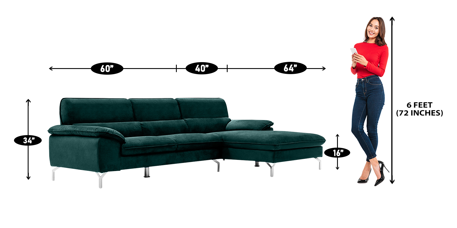 Libby LHS Sofa with Lounger in Green Colour by Dreamzz Furniture
