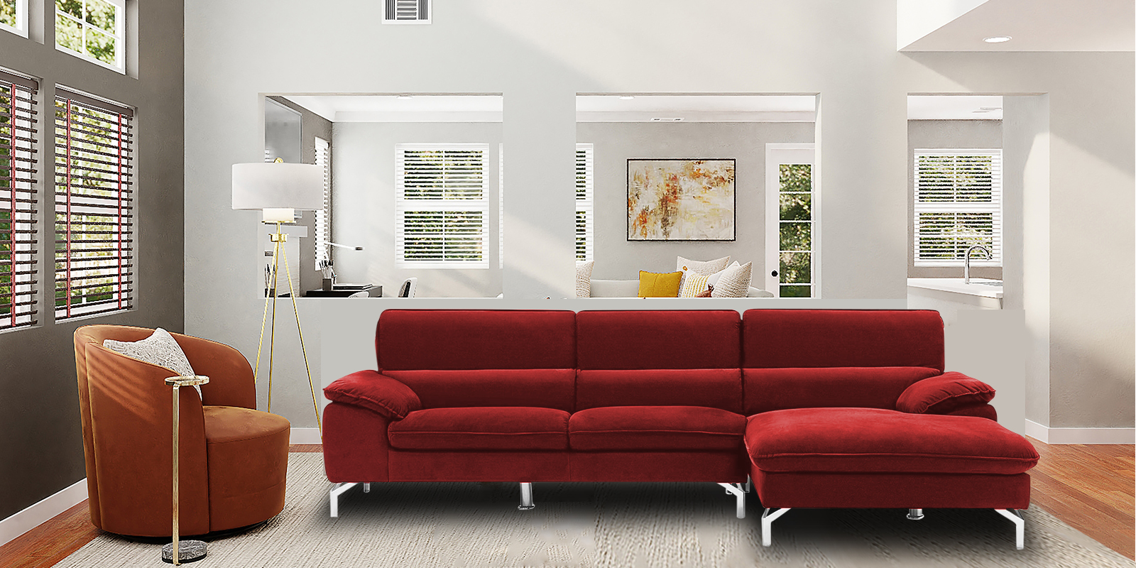 Libby LHS Sofa with Lounger in Red Colour