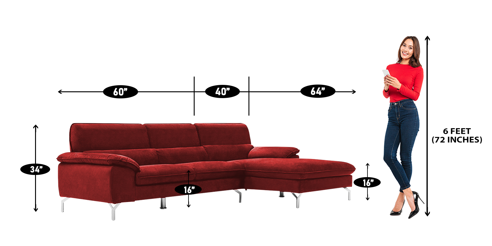 | Dimensions | H 36 x W 64 x D 100 (in) ; Seating Height-16 (in) |