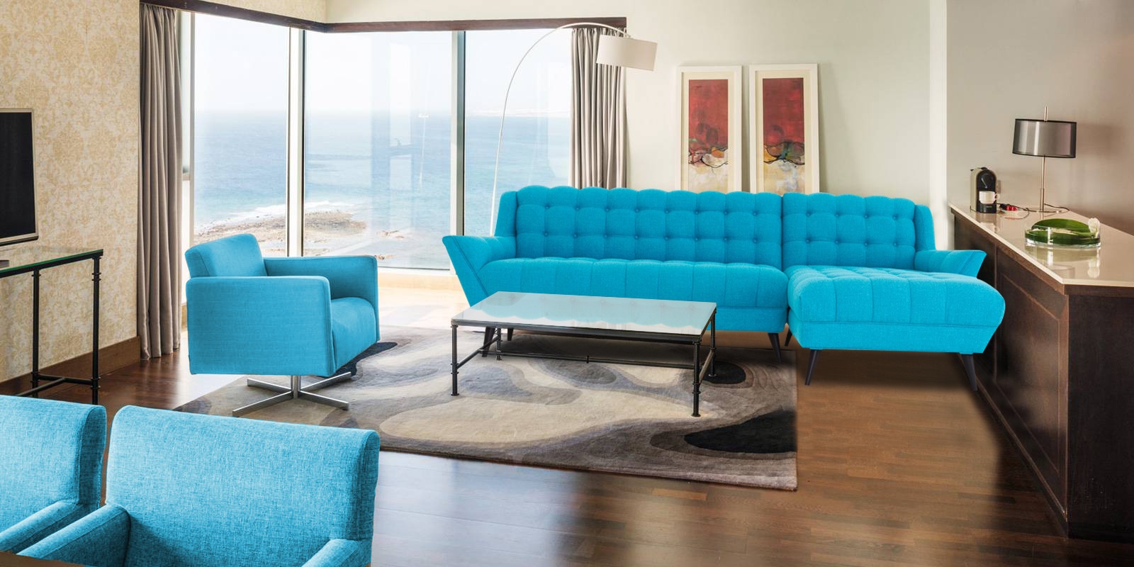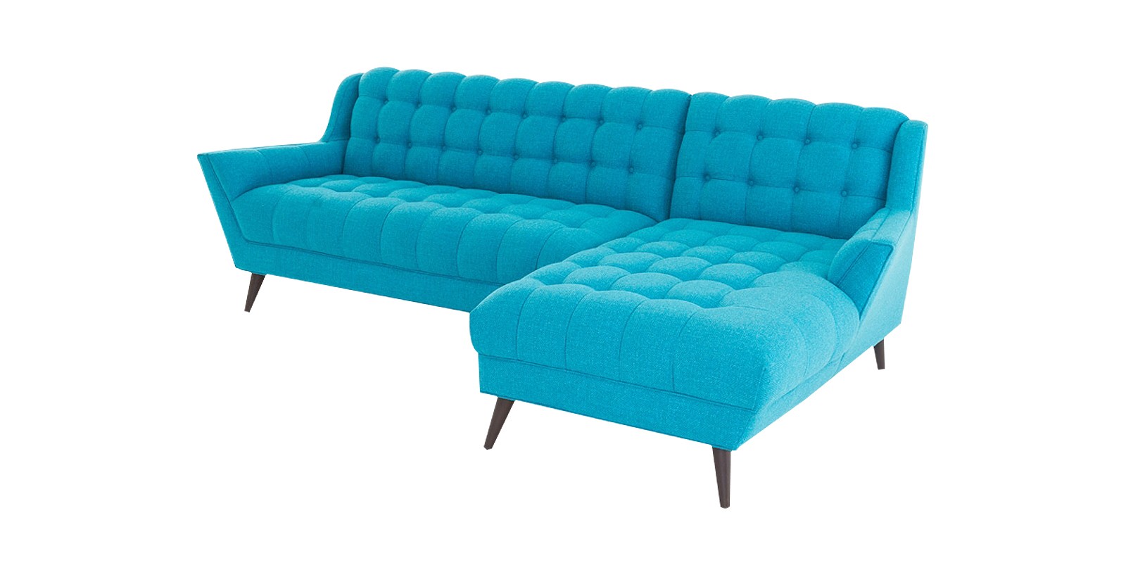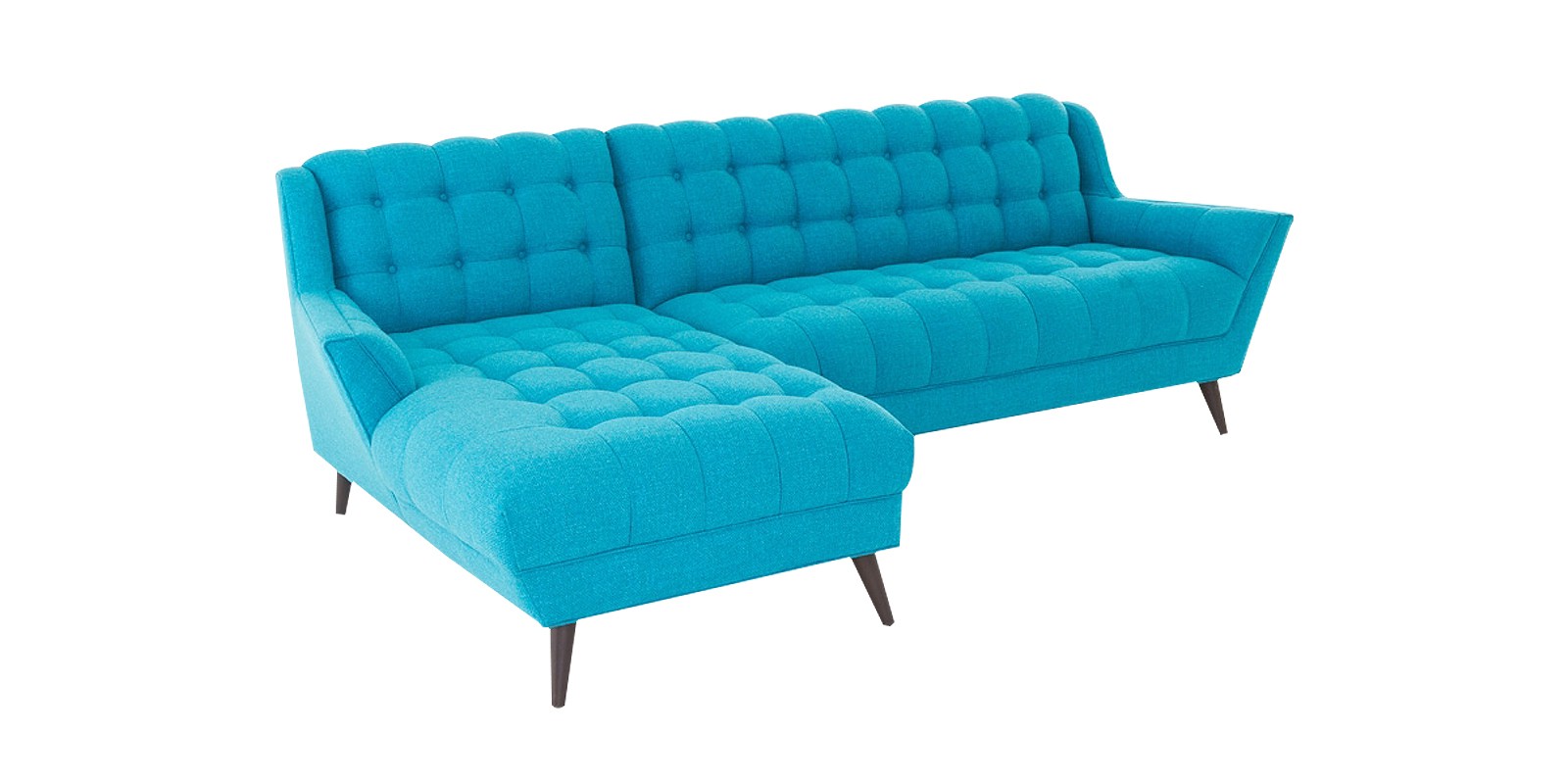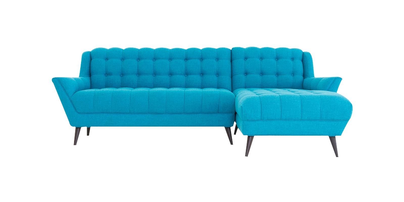Mid-Century Town LHS Two Seater Sofa With Lounger In Ocean Blue Colour