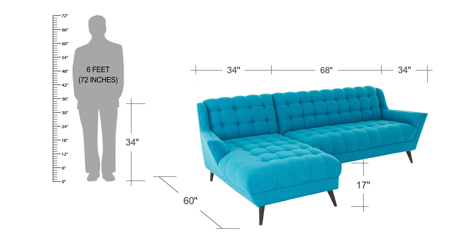 | Dimensions | Sofa : H 34 x W 68 x D 34 (in) ; Lounger : H 34 x W 34 x D 60 (in); Seating Height-17 (in) |