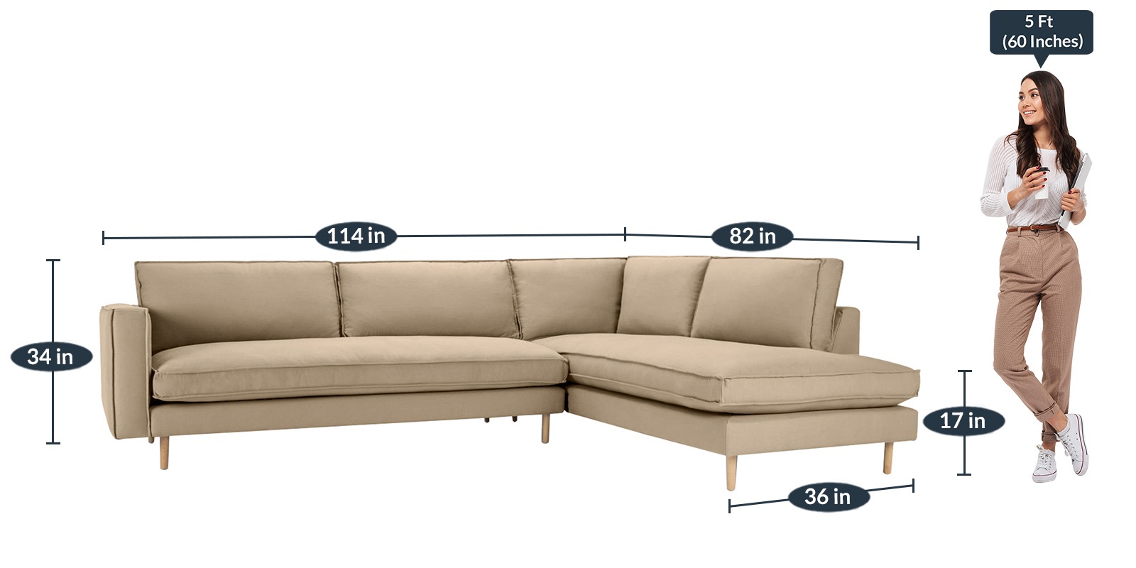 When you clearly display your classy taste and an eye for design, this sectional sofa in beige colour by Dreamzz Furniture is a result of looking at it in an unconventional way. Salwood frame with Teakwood legs provides durability & integrity while the simple look with filled cushions give this sectional sofa an indulgent feel.